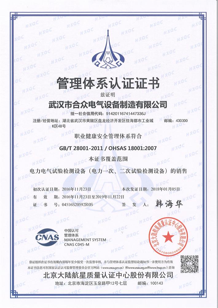 職業(yè)健康安全管理體系認證