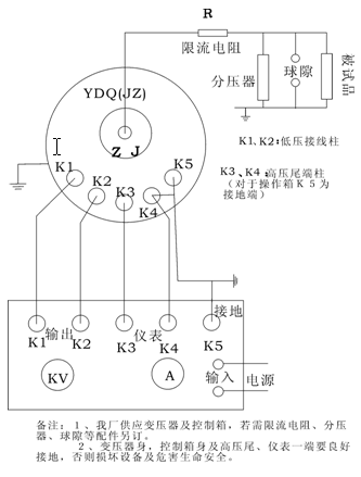 注:高壓輸出串激線與儀表及高壓尾應(yīng)可靠相連,否則易擊穿變壓器。 接線請(qǐng)校極性。
