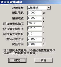 該測試專門用于測試距離保護的“最靈敏阻抗角”。按傳統(tǒng)方法進行,阻抗角變化始值、終值設置應分別設置在保護的兩動作邊界外,且包含最大靈敏角。因為測試點很多,若不知道保護實際動作的邊界整定值,為節(jié)約時間,在第一次測試時將變化步長設置得大一些,可以測試出大概的邊界。然后將阻抗角變化始值、終值設置在已知的兩邊界附近,并且給定一個合適的變化步長就可以測出精度符合要求的最大靈敏角。